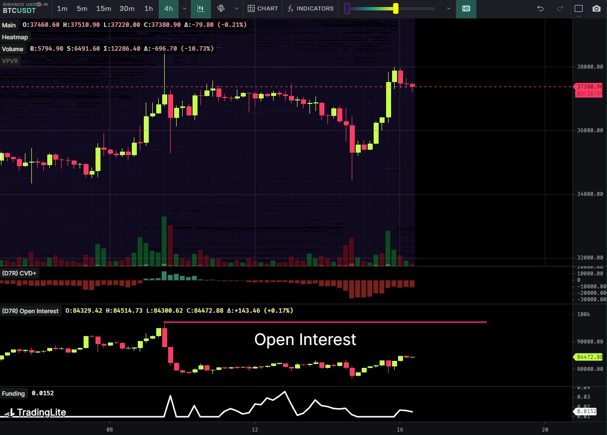 BTC/USD chart with OI, funding rates data. Source: Daan Crypto Trades/X