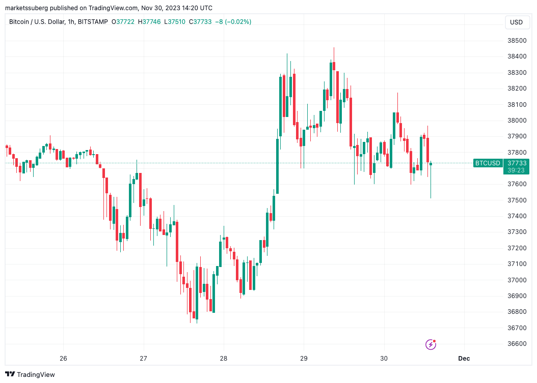 BTC/USD was up nearly 10% in November at the time of writing, making it the first “green” 11th month of the year since 2020. Above $37,660, the close would become its highest since May 2022.