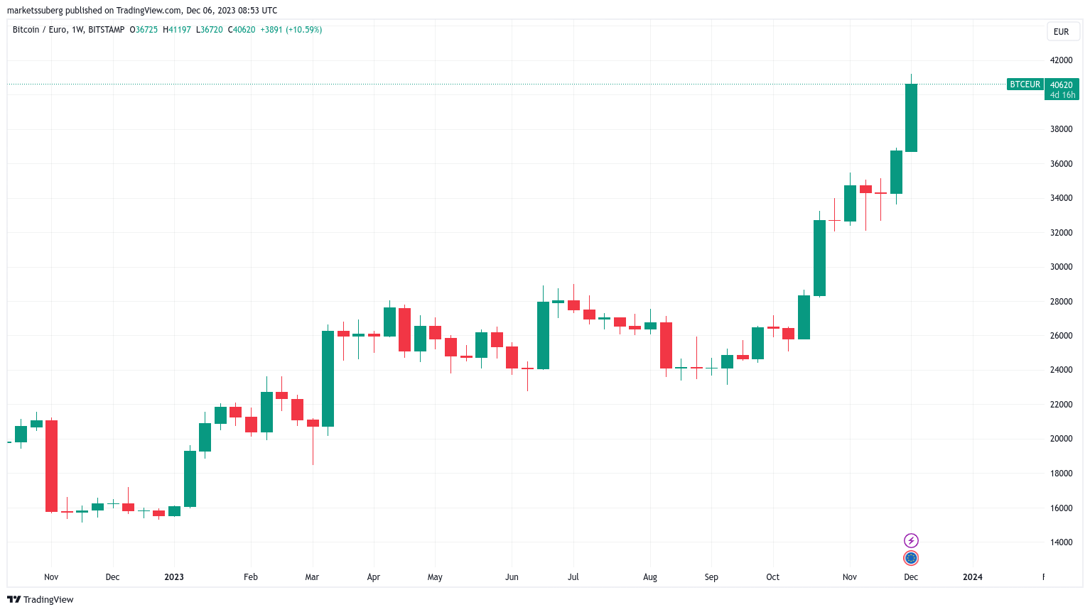 A year after the ECB’s premature obituary, Bitcoin is at its highest since April 2022 — at $43,800 at the time of writing, or 166% higher than when the bank sounded the alarm, per data from Cointelegraph Markets Pro and TradingView.