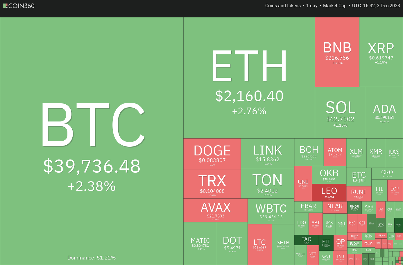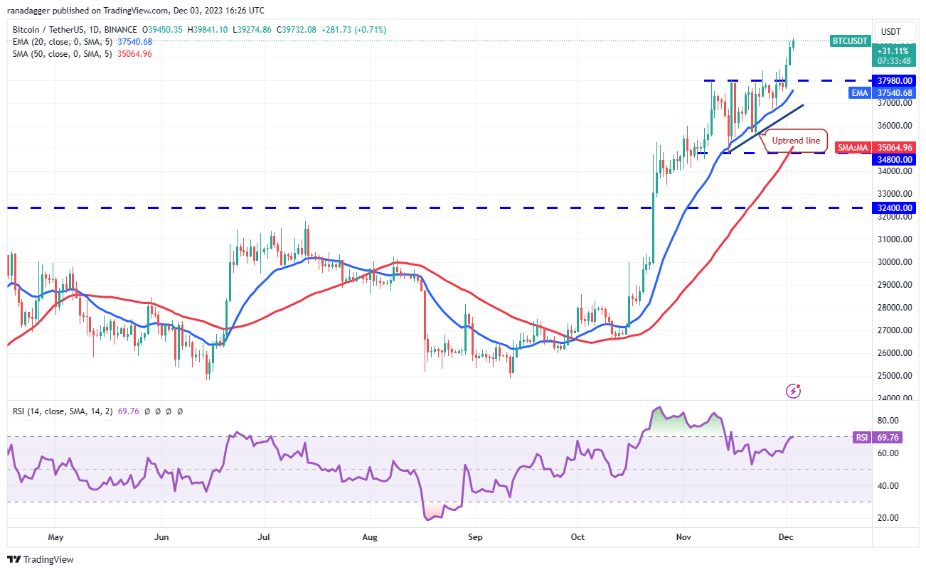Bitcoin (BTC) finally broke above the formidable resistance of $38,000 in the past week and marched closer to $40,000. This move shows that Bitcoin’s trajectory remains up. The bulls will try to maintain the momentum and achieve a strong close to the year, while the bears will try to pull the price down.