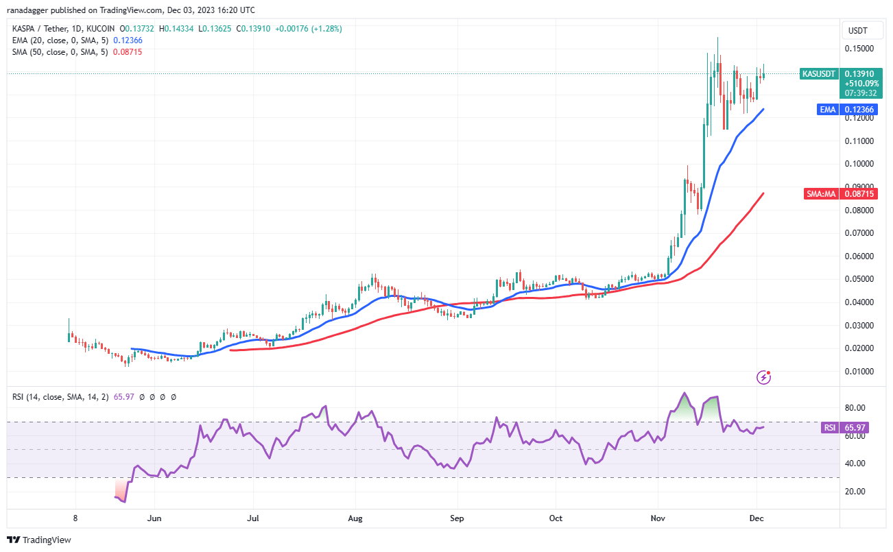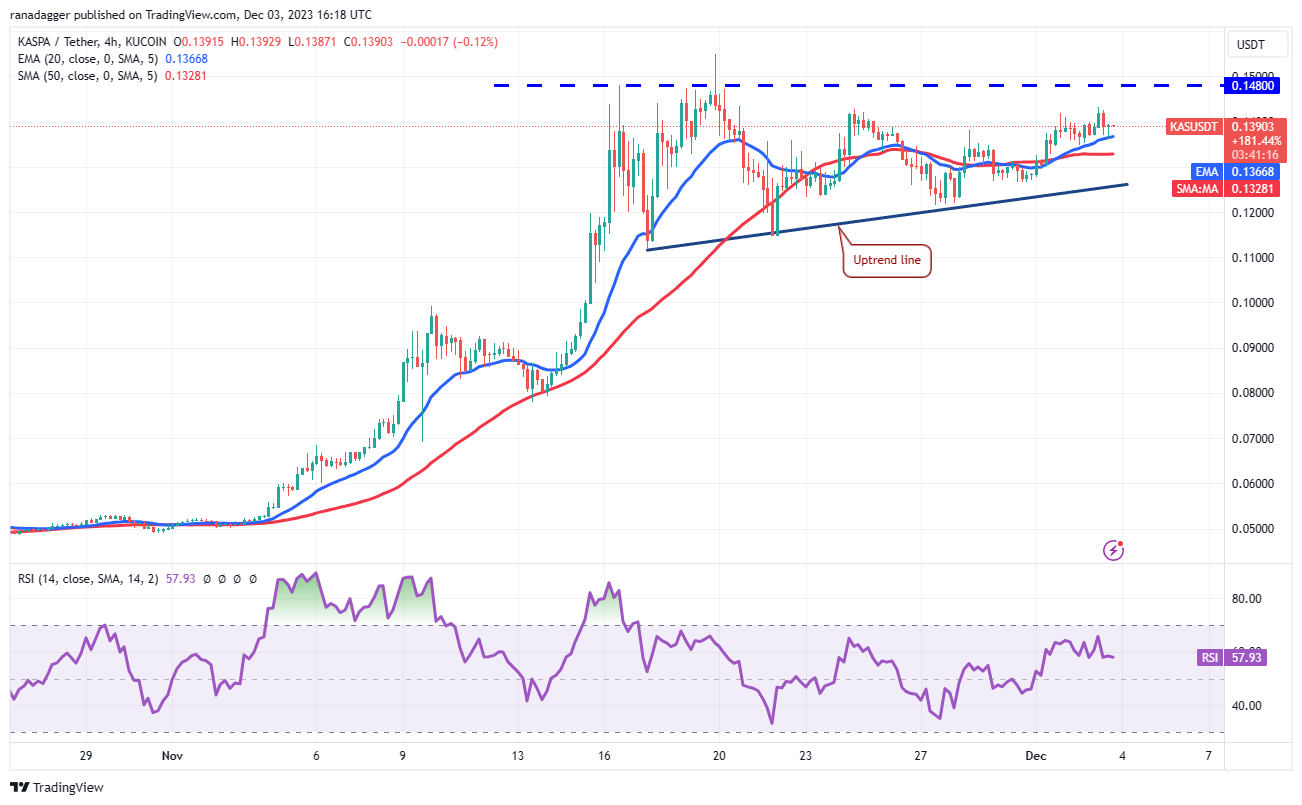 Buyers are trying to push the price toward the overhead resistance at $0.16, where the bears are expected to mount a strong defense. If bulls overcome this obstacle, the KAS/USDT pair could resume the uptrend. The pair may then sprint toward the target objective at $0.20.
