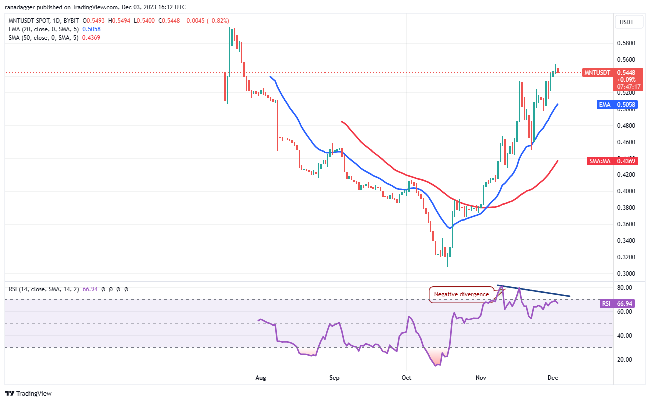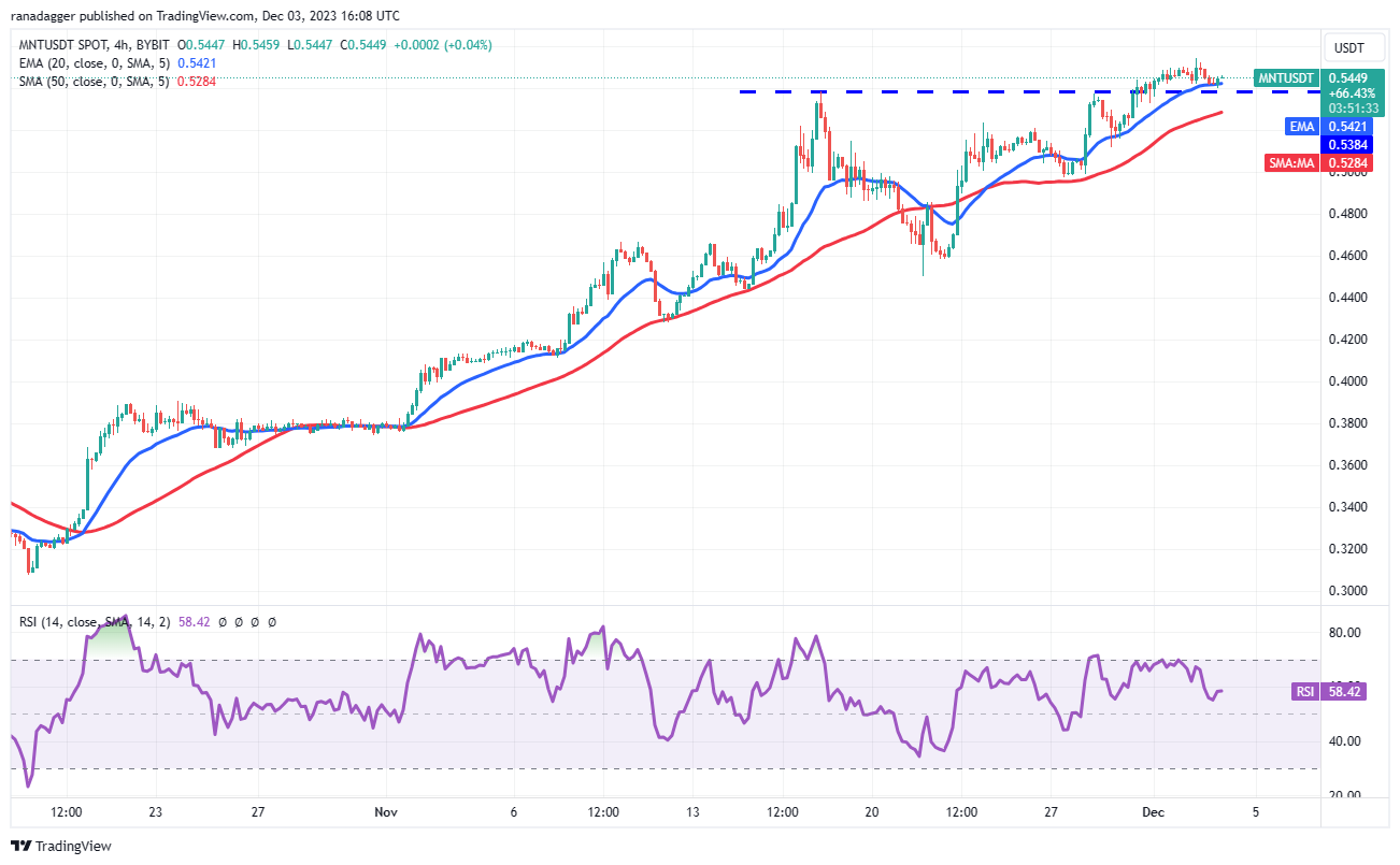 The bulls pushed Mantle (MNT) above the near-term resistance of $0.54 on Nov. 30, indicating that the uptrend remains intact.