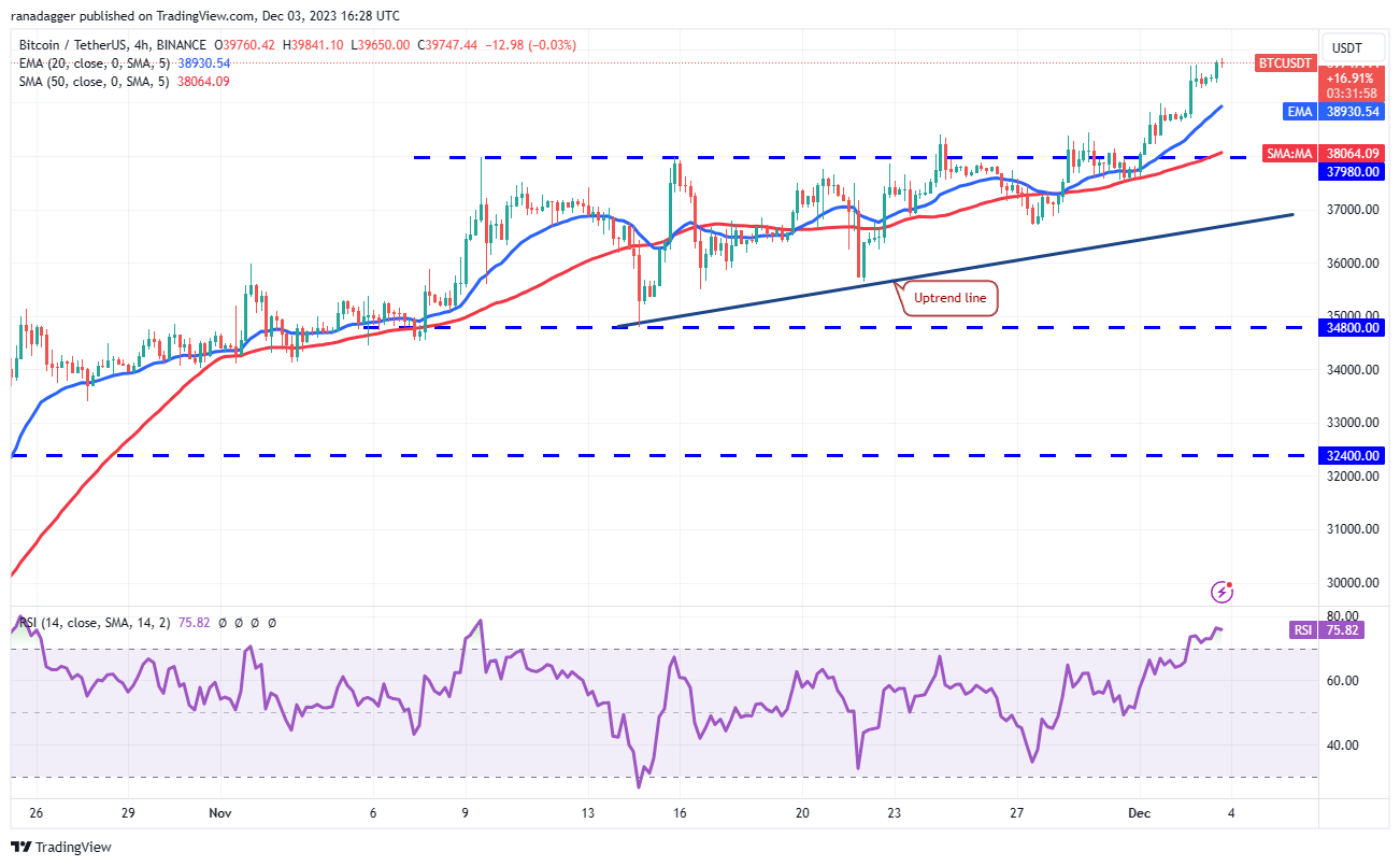 If the price rebounds off the 20-EMA, it will indicate that traders are buying on minor dips. That will open the doors for a possible rise to $41,160. Conversely, a break below $38,000 could sink the pair to the uptrend line.
